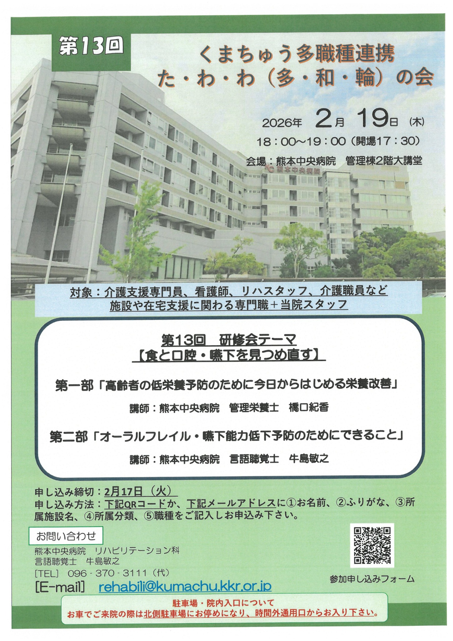 くまちゅう多職種連携たわわの会から、下記により開催される標記研修会の周知依頼がありましたので、お知らせいたします。